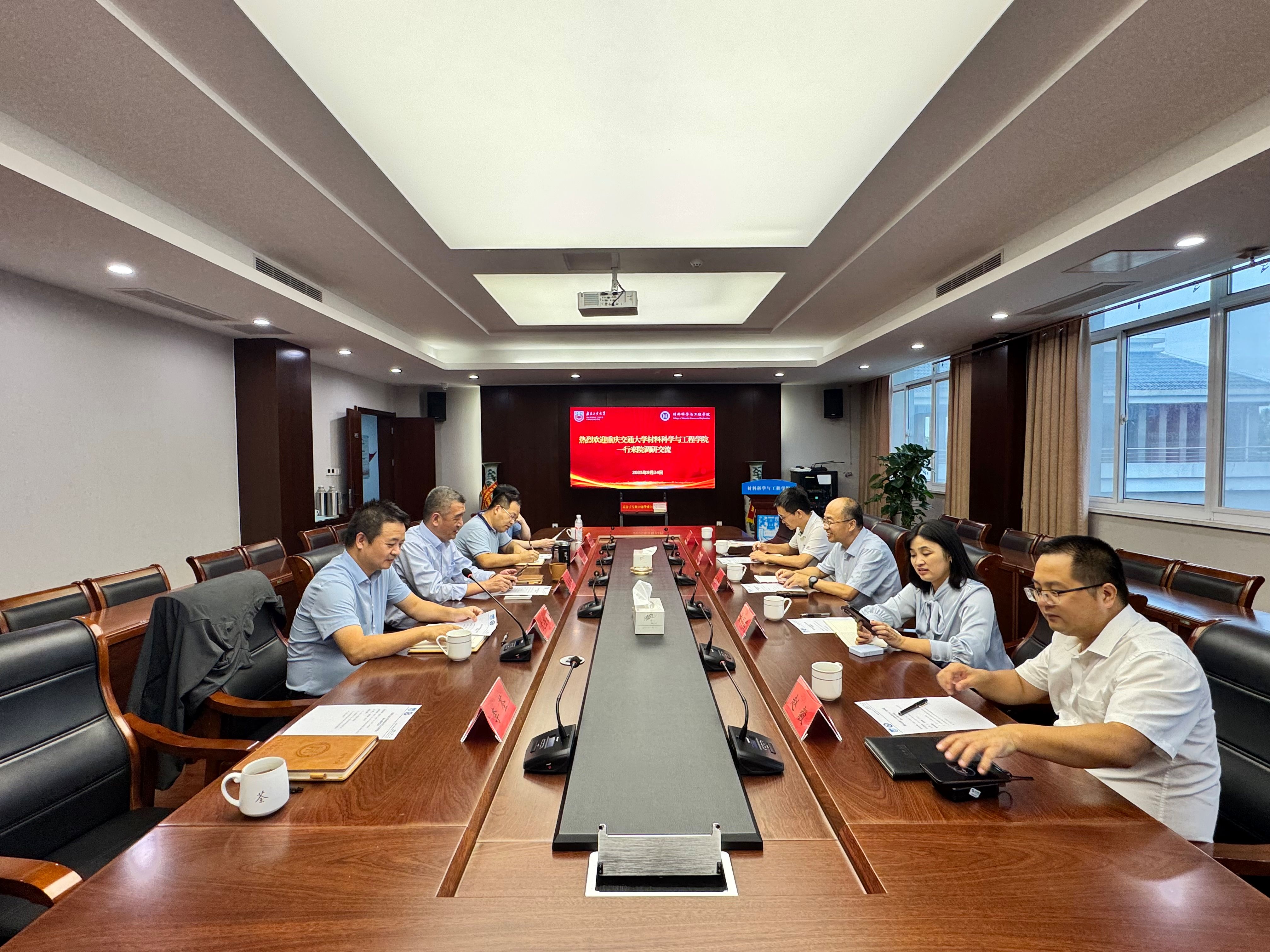 9月24日下午,重庆交通大学材料科学与工程学院院长王俊杰一行来院交流调研,学院党委书记高树军等党政班子成员出席会议,会议由副院长沈岳松主持。
