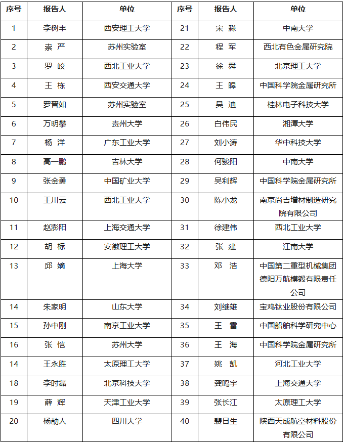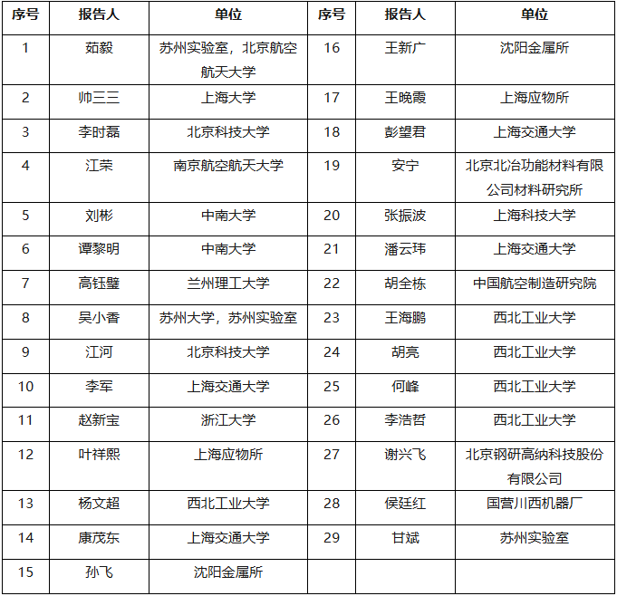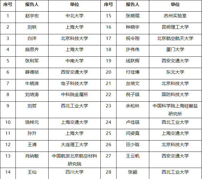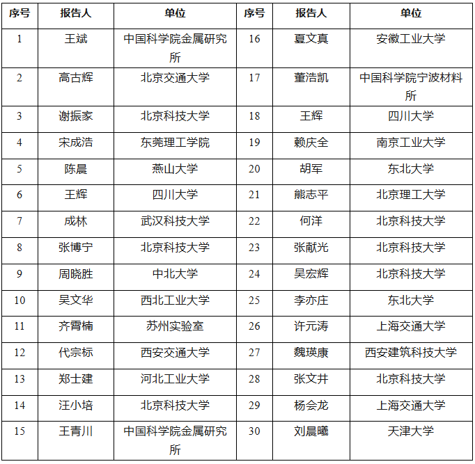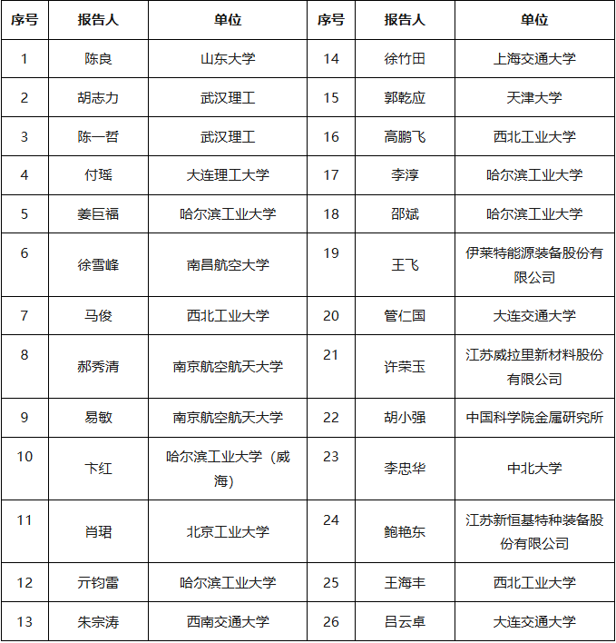 承办单位:上海交通大学、北京科技大学、西安交通大学、西北工业大学、辽宁材料实验室