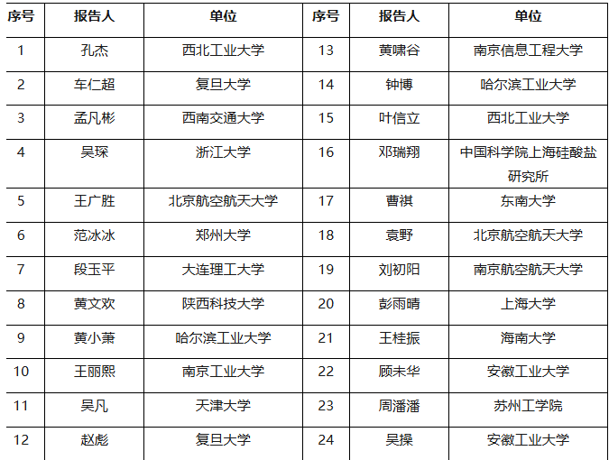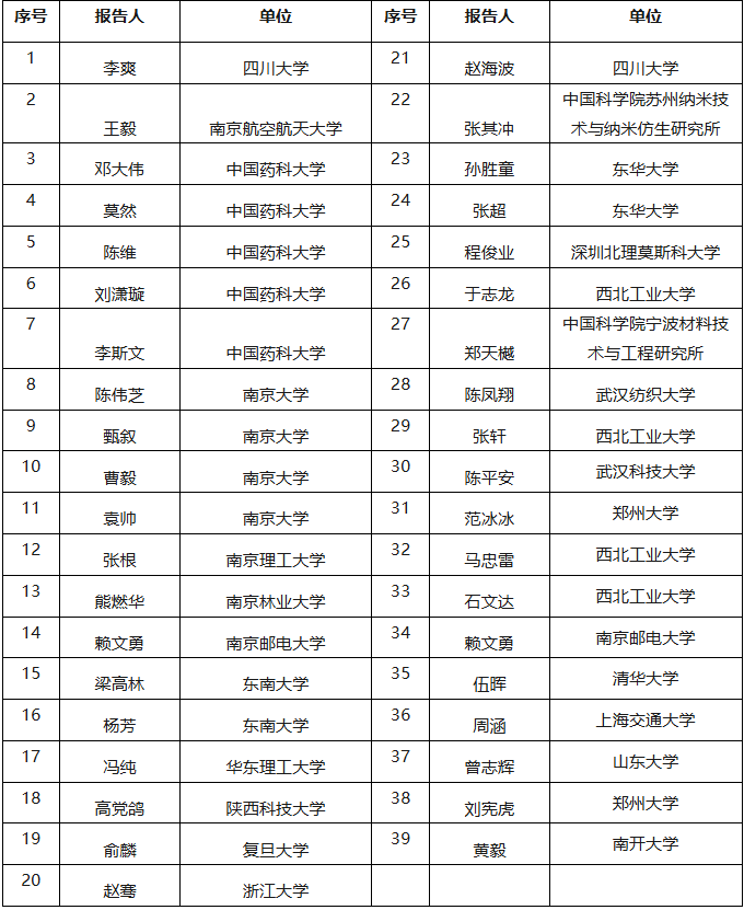 协办单位:长三角先进材料研究院、苏州实验室、南京大学、东南大学、南京航空航天大学、南京理工大学、河海大学、南京师范大学、南京林业大学、南京信息工程大学、南京邮电大学、南京工程学院、金陵科技学院、西安电子科技大学、西北有色金属研究院、哈尔滨工业大学