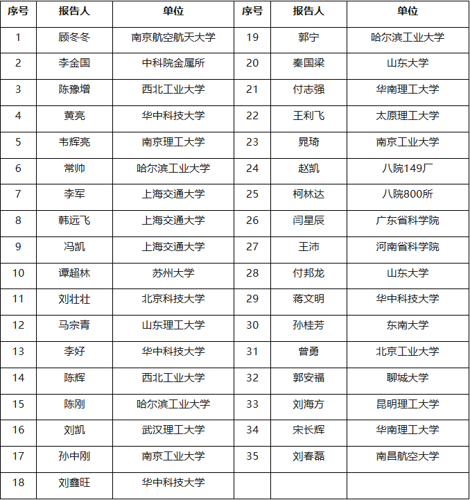 承办单位:中南大学、南京航天航空大学、北京科技大学、华中科技大学、哈尔滨工业大学、上海交通大学、西北工业大学
