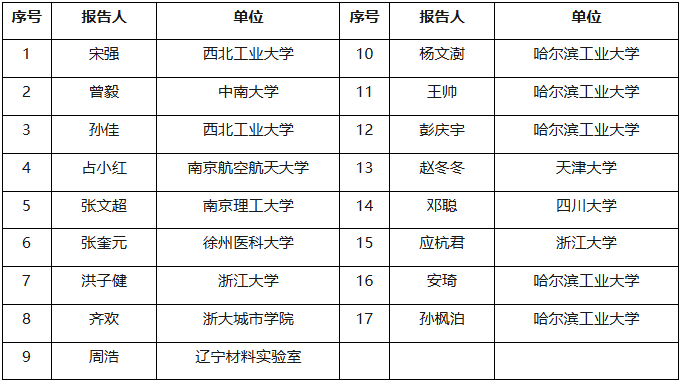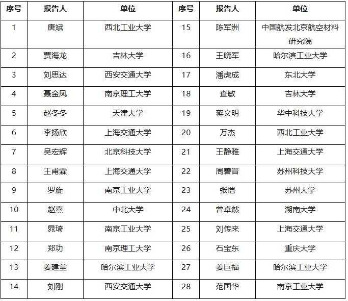 承办单位:西北工业大学、中国科学院金属研究所、南京工业大学、中南大学、南京工业大学