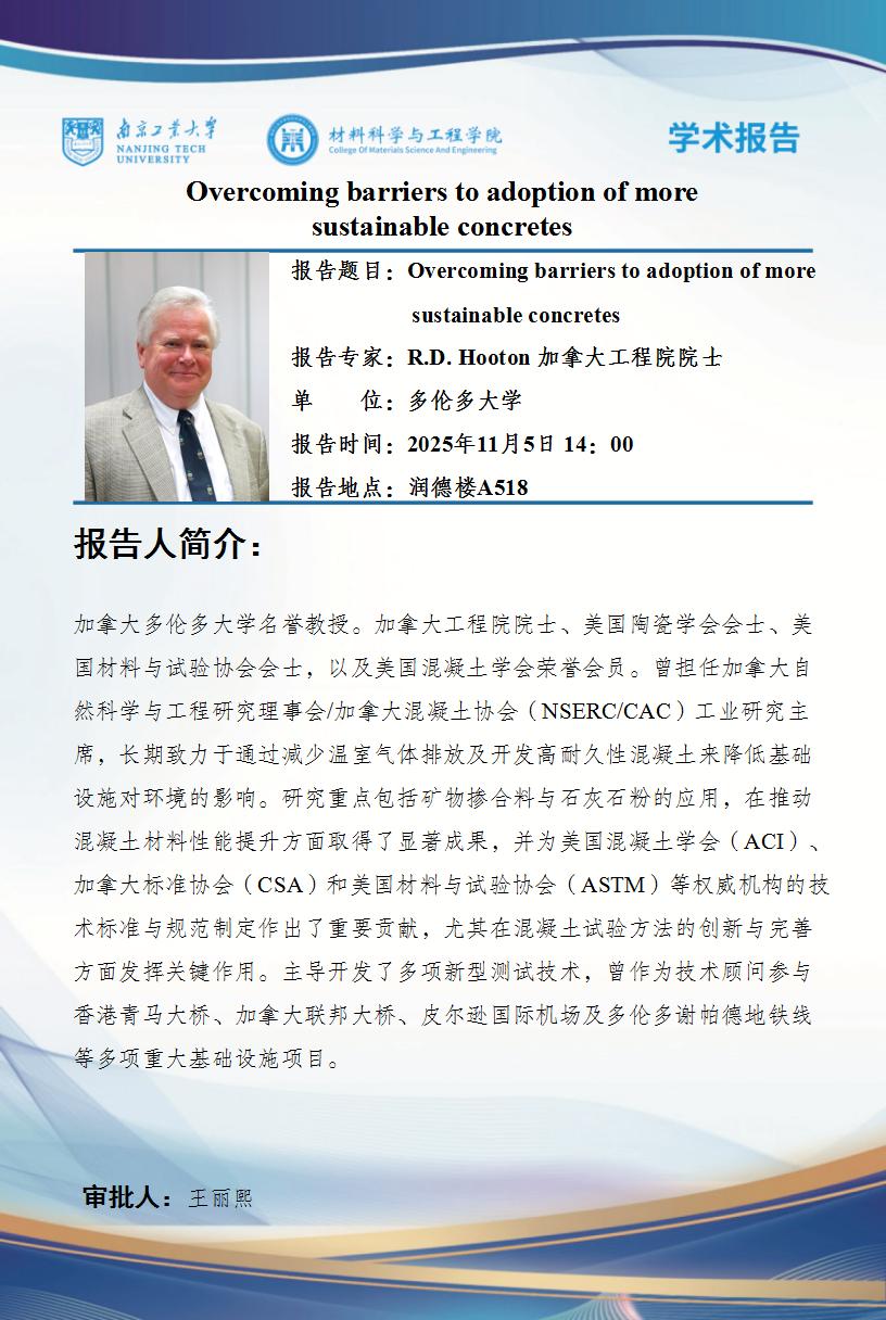 【学术报告】R.D.Hooton:Overcoming barriers to adoption of more sustainable concretes