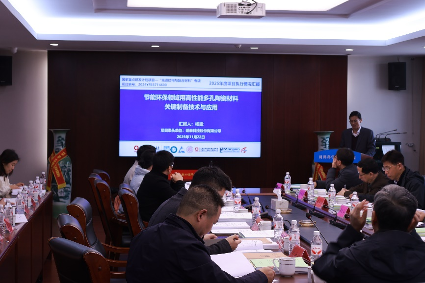 11月22日,由南京工业大学材料科学与工程学院杨建教授作为项目负责人主持的“十四五”国家重点研发计划“先进结构与复合材料”重点专项“节能环保领域用高性能多孔陶瓷材料关键制备技术与应用”项目2025年度总结暨测试大纲评审会在南京工业大学材料与科学工程学院召开。项目责任专家中国科学院上海高等研究院黄政仁研究员、清华大学沈洋教授、专家组成员武汉钢铁集团耐火材料有限公司雷中兴教授、东华大学罗维教授、安徽工业大学李明晖教授、南京玻璃纤维研究设计院有限公司匡宁教授、苏州汇科技术股份有限公司陈龙豪高级工程师应邀参会。南京工业大学材料学院院长崔升教授、南京工业大学科研院金俊阳副处长、中建材中岩科技有限公司张忠伦副总经理及项目组骨干成员50余人参加会议。材料学院副院长沈岳松和责任专家沈洋教授、黄政仁研究员主持会议。