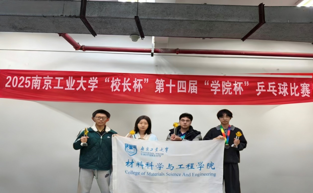 12月7日,南京工业大学“校长杯”第十三届“学院杯”乒乓球比赛在行健体育馆正式开赛。材料学院陈子尧、廖祺皓、张芮萍、杨卓四位同学凭借出色表现,荣获本次比赛的冠军。