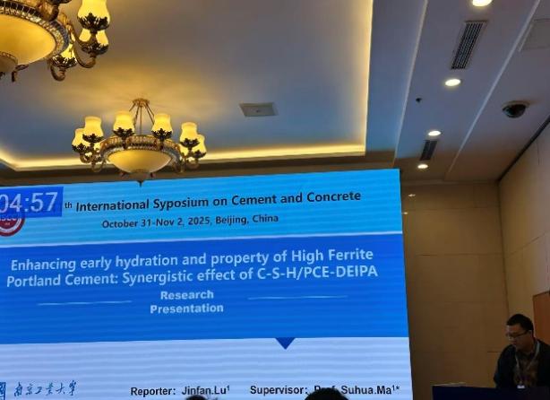 2025年11月1-2日,由中国硅酸盐学会和中国建筑材料科学研究总院有限公司主办,中国硅酸盐学会水泥分会承办的第十一届水泥与混凝土国际会议在北京顺利召开。本届大会以“低碳驱动发展,数智引领未来”为主题,来自全球20多个国家和地区的500余位专家学者齐聚一堂,围绕水泥基材料低碳发展的前沿趋势与数字赋能新技术展开深入交流。我院马素花教授、博士生李淯伟和褚家浩以及研究生刘姚、戴航、王训芝和陆金帆一行参会,展示学院低碳胶凝材料方向最新科研成果。